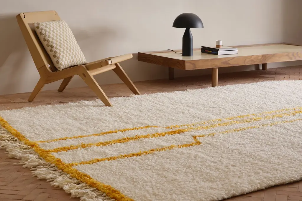 Our Moroccan pieces are each one-of-a-kind. Much of our collection was woven between 30 and 100 years ago, and curated by us. Other rugs in our collection are fresh off the loom and made with traditional techniques. Moroccan rugs don’t come with a key. As with any painting or poem, their motifs have many subjective interpretations. Originally made for personal use, these rugs took months to weave, documenting a shifting tide of events and emotions in the weaver’s life.