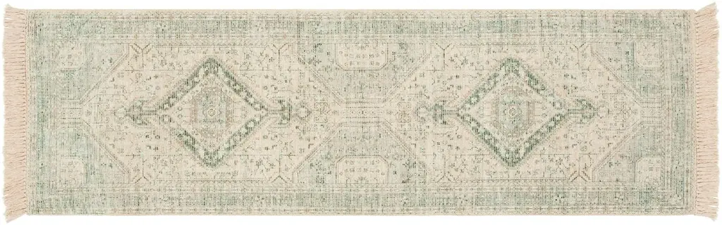 The subtle abrash, or color variations, of this handwoven rug gives it the allure of a family heirloom. The two-and-a-half-inch fringe adds to the artisanal elegance. A rug pad is recommended to prevent slipping and extend the life of the rug.