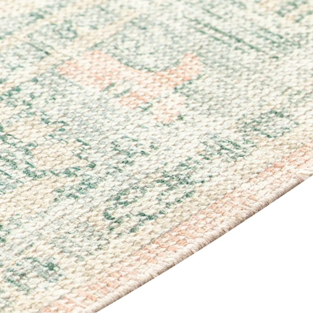 The subtle abrash, or color variations, of this handwoven rug gives it the allure of a family heirloom. The two-and-a-half-inch fringe adds to the artisanal elegance. A rug pad is recommended to prevent slipping and extend the life of the rug.