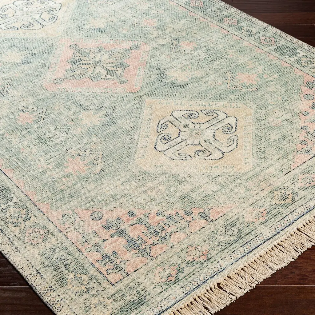 The subtle abrash, or color variations, of this handwoven rug gives it the allure of a family heirloom. The two-and-a-half-inch fringe adds to the artisanal elegance. A rug pad is recommended to prevent slipping and extend the life of the rug.