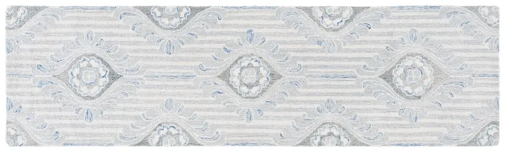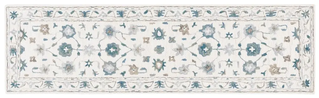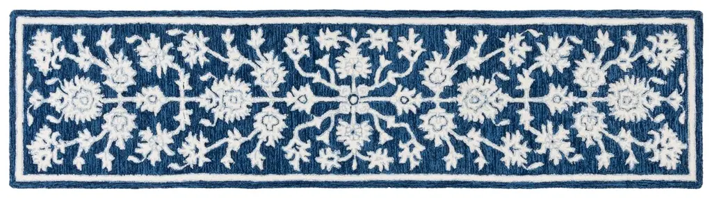 Bring home cottage charm with this lively rug, a bouquet of blues and ivories. Hand-tufted of plush wool and soft cotton, it's as delightful to sink your feet into as it is to look at. A rug pad is recommended to help prevent slipping and extend the life of the rug.