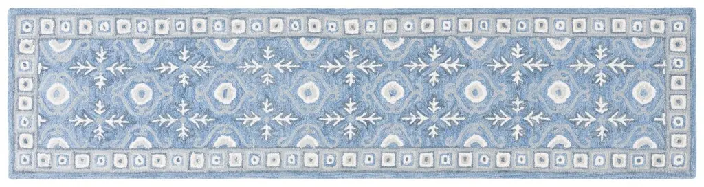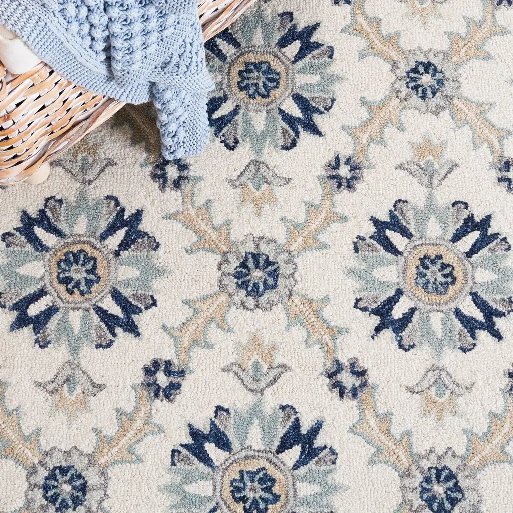 Bring home cottage charm with this lively rug, a bouquet of blues and ivories. Hand-tufted of plush wool and soft cotton, it's as delightful to sink your feet into as it is to look at. A rug pad is recommended to help prevent slipping and extend the life of the rug.
