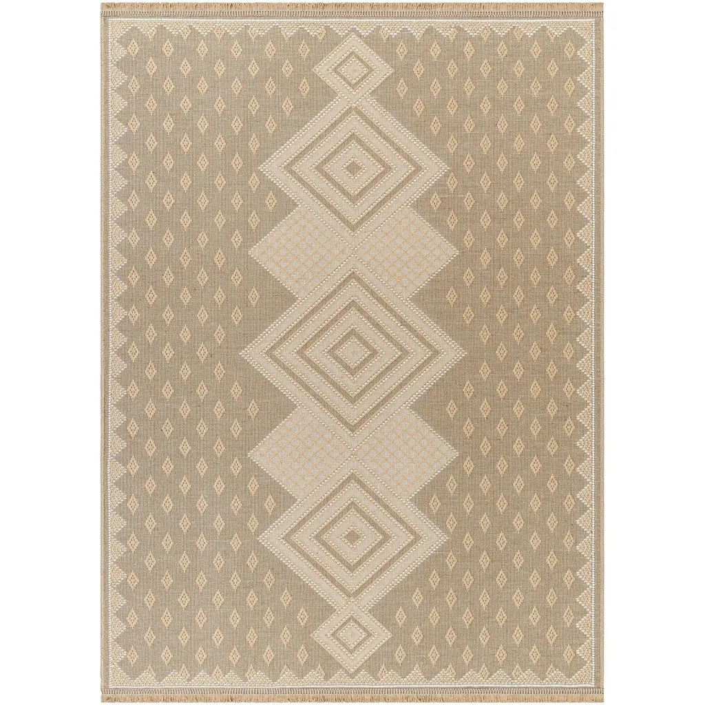 Introducing the "Mystery" area rug, a stunning addition to any space that effortlessly marries style and durability. Manufactured in Turkey and machine woven with a blend of Jute and Cotton, this rug is designed to withstand high traffic areas while maintaining its aesthetic appeal. This no-pile rug showcases an intricate design framed by charming fringe details, adding a unique touch to your decor. It's recommended for use with a rug pad for added stability. With maintenance as simple as machine washing in cold water on normal cycle using mild detergent, it?s as practical as it is beautiful. Avoid bleaching or dry cleaning; just tumble dry on medium heat to keep its charm intact.