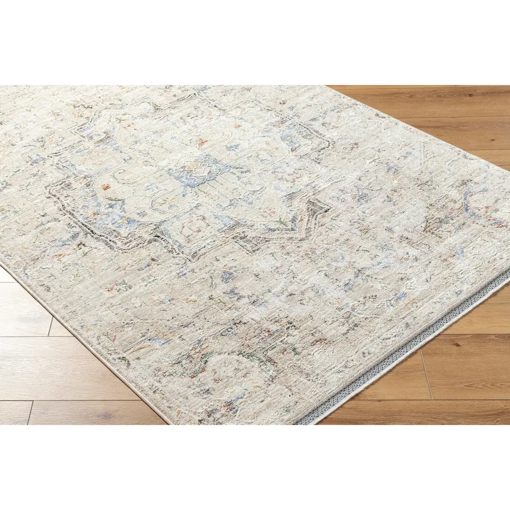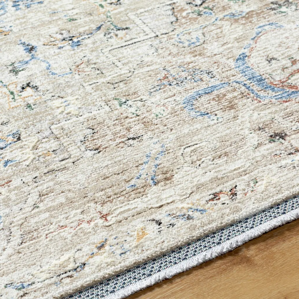 Livabliss Rivaldo Traditional Medallion Area Rug - 7' Round - Cream Blue - Round