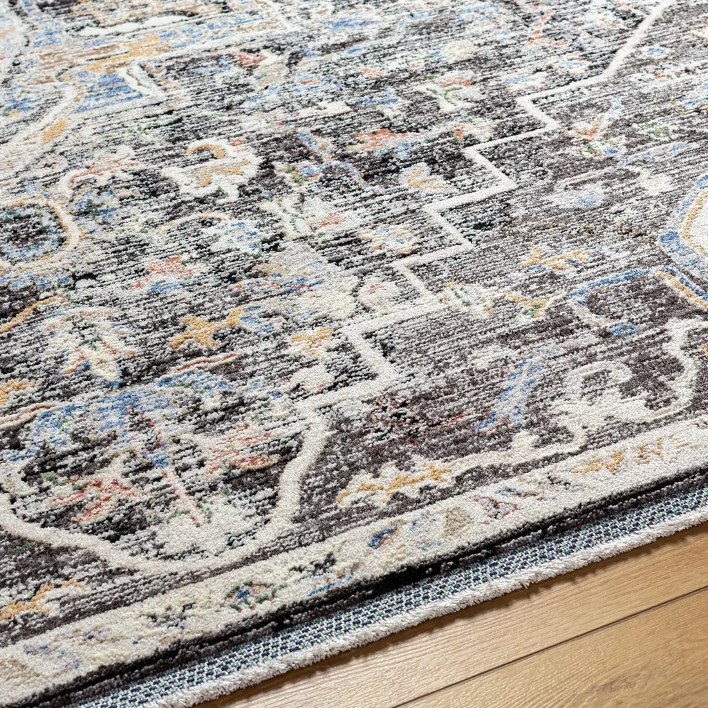 The Rivaldo area rug is the perfect way to add a touch of updated traditional flair to any room. This beautiful machine-woven piece is crafted from polyester and made in Turkey, making it both durable and stylish. The medium pile makes it great for high traffic areas, while its fringe adds a unique visual touch. Plus, it's easy to care for - simply spot clean with mild detergent when needed. For best results, pair with a rug pad (not included).