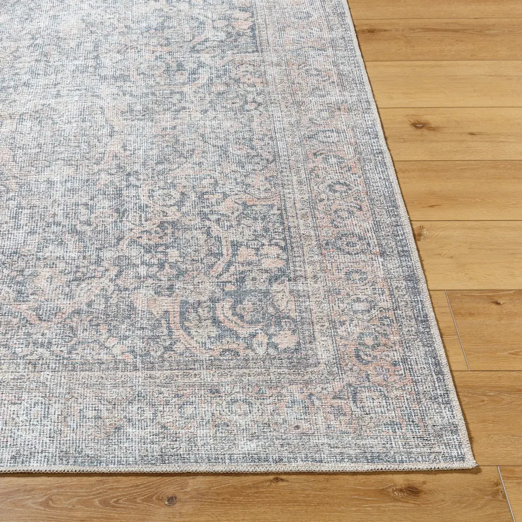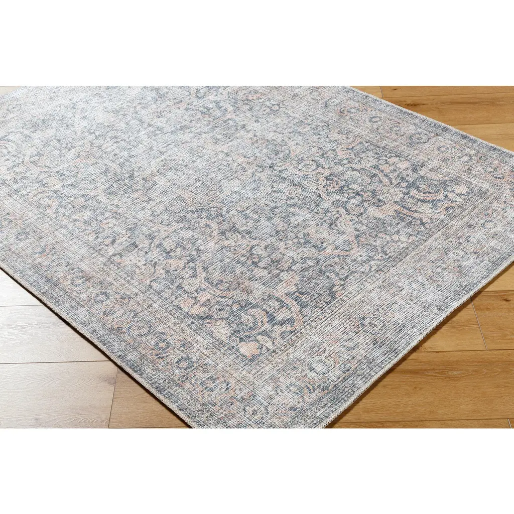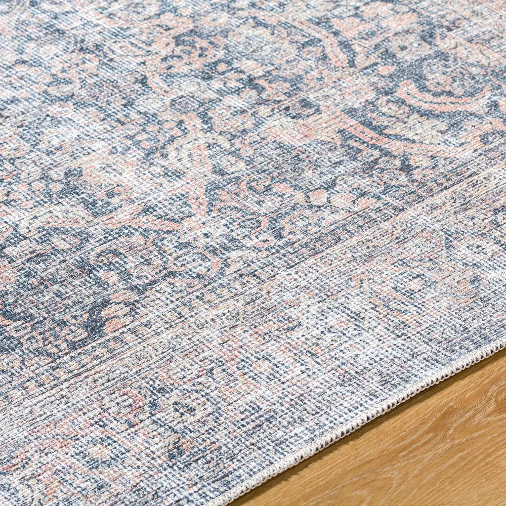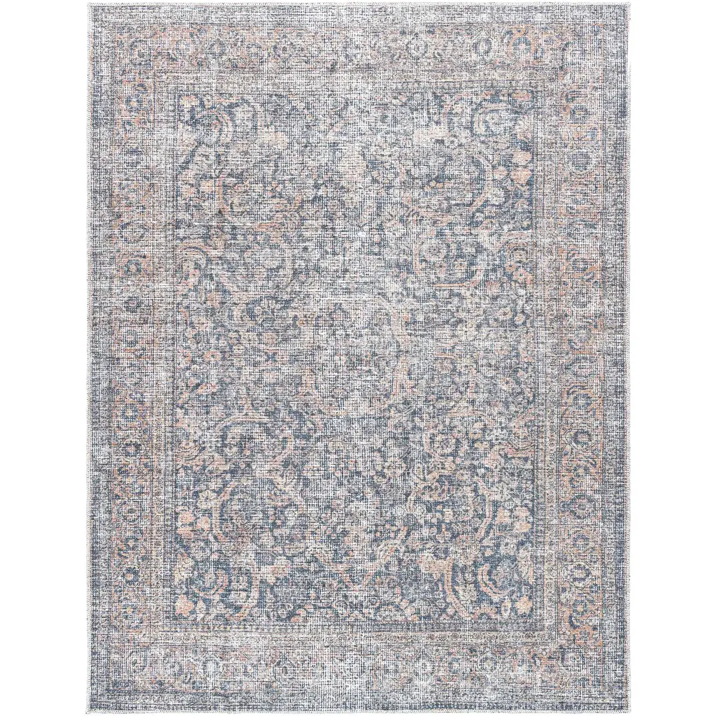 Introducing the Lorelai Area Rug, a captivating collaboration between Vivir x Livabliss that brings traditional elegance to your home. This stunning rug features a classic pattern adorned with filigree elements and intentional distressing, giving it a timeless appeal. Crafted in Turkey with meticulous machine-woven construction, it combines the durability of polyester with a low pile design, making it ideal for high-traffic areas. The beautiful interplay of denim blue, apricot, and white hues adds a vibrant yet sophisticated touch to any room. For added longevity and ease of care, this rug is machine washable on a delicate cycle and requires laying flat to dry. Use with a rug pad enhances its functionality and comfort. Elevate your space with the Lorelai Area Rug, where tradition meets modern durability.
