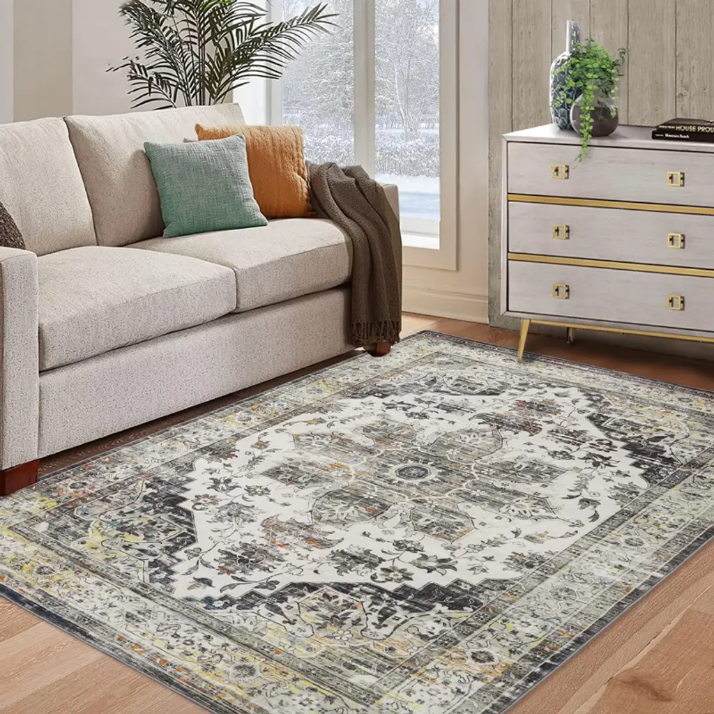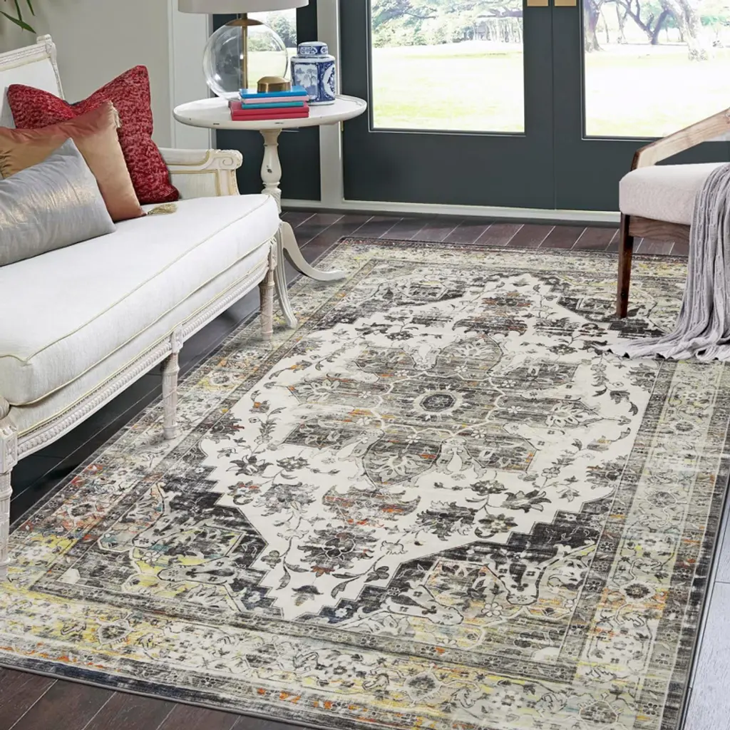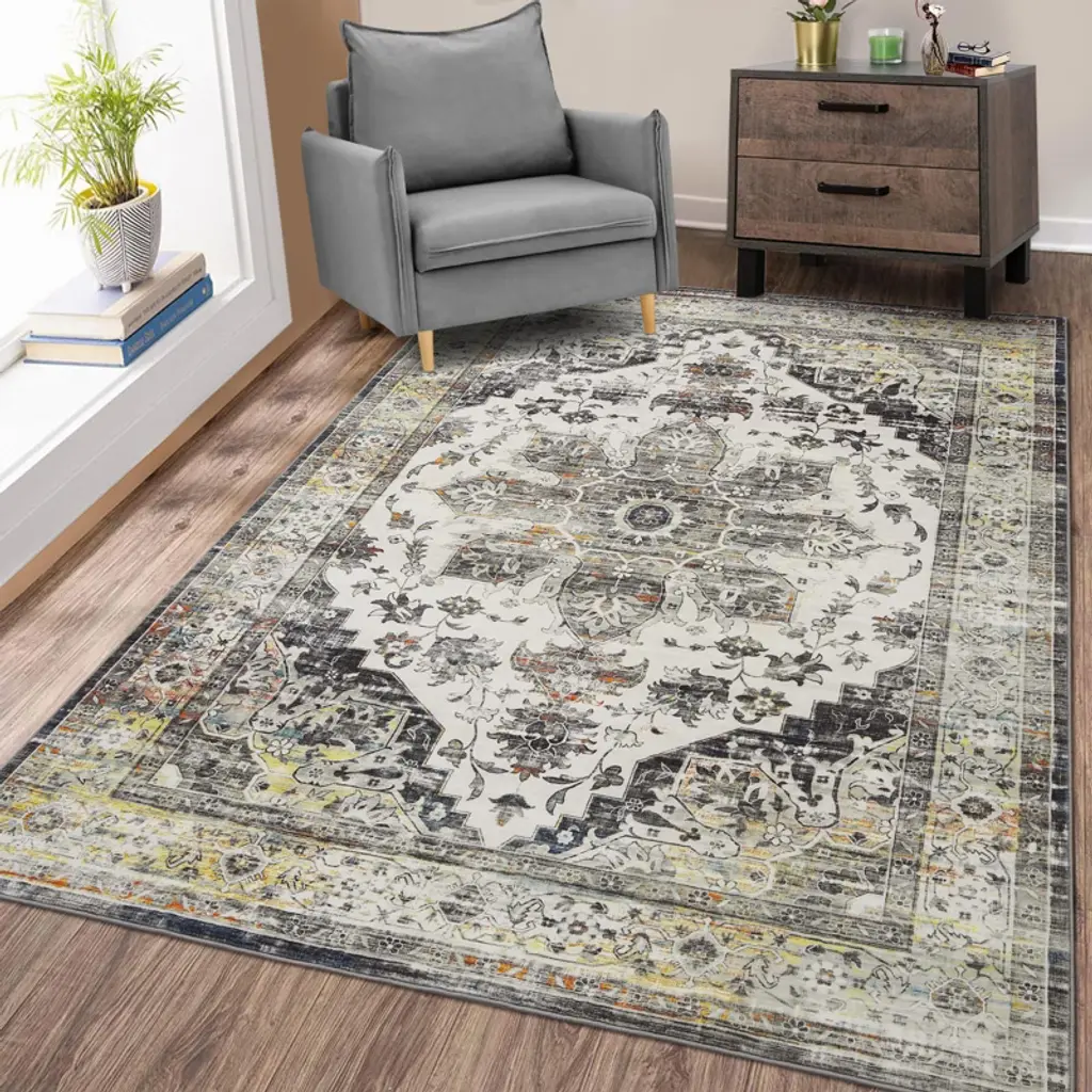 Living Room 8X10 Machine Washable Area Rug Vintage Distressed Carpet Non-slip Low Pile Indoor