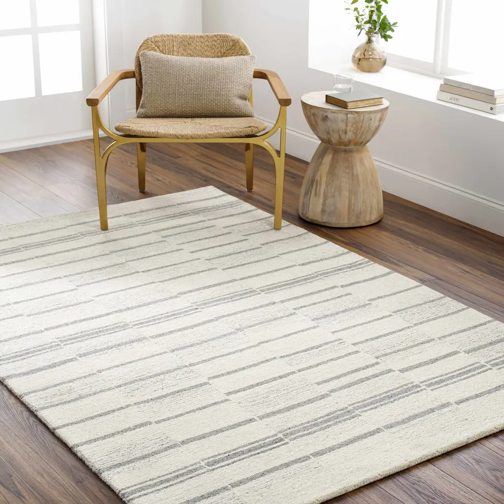 Collection: Loba Colors: Beige, Medium Gray, Medium Brown, Gray Construction: Hand Tufted Material: 100% Wool Pile: Medium Pile Pile Height: 0.24" Styles: Transitional,Bohemian Backing: Canvas Made In: India Thickness: 0.39" Price Range: $$$$$ (Affordable)