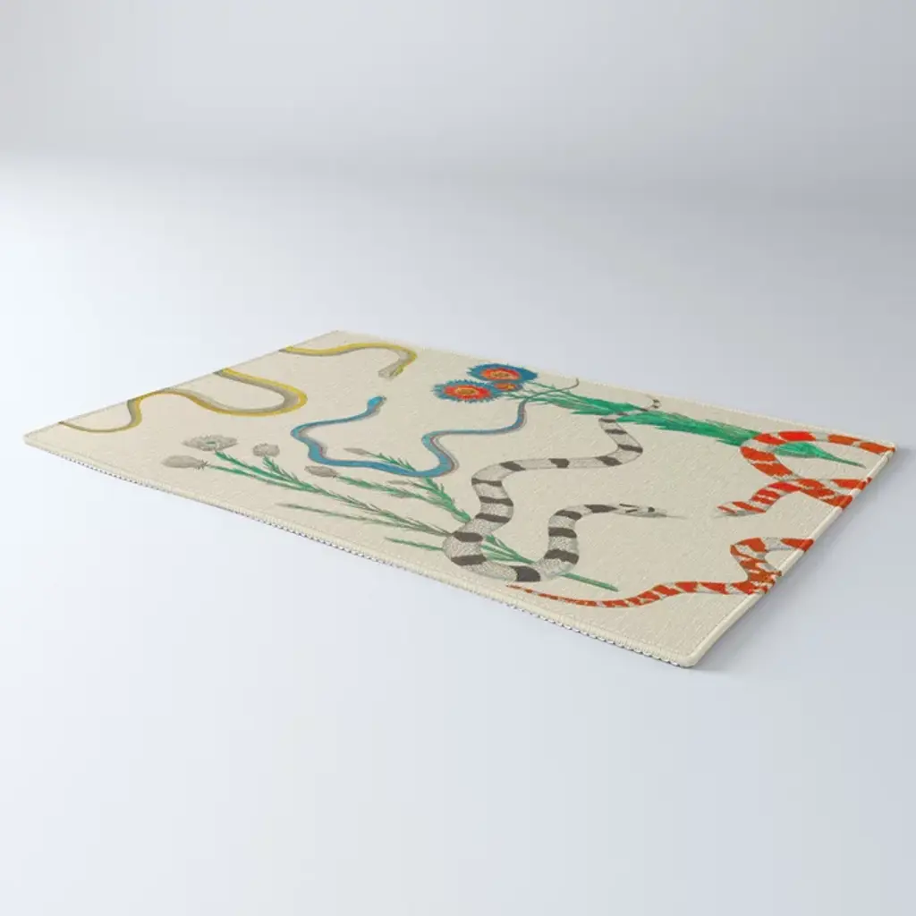 Locupletissimi Rerum Naturalium - Vol. 2 - Albertus Seba Colorful Snake Floral Arrangement Rug