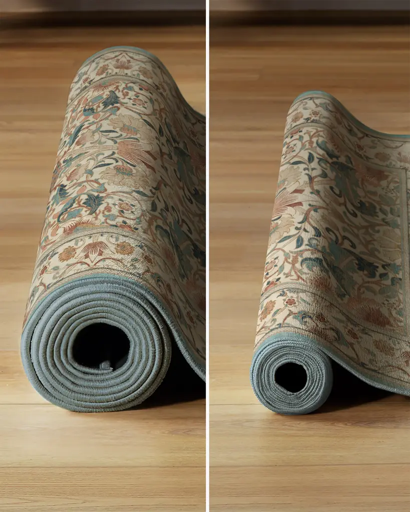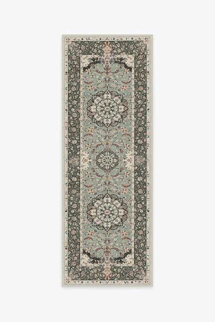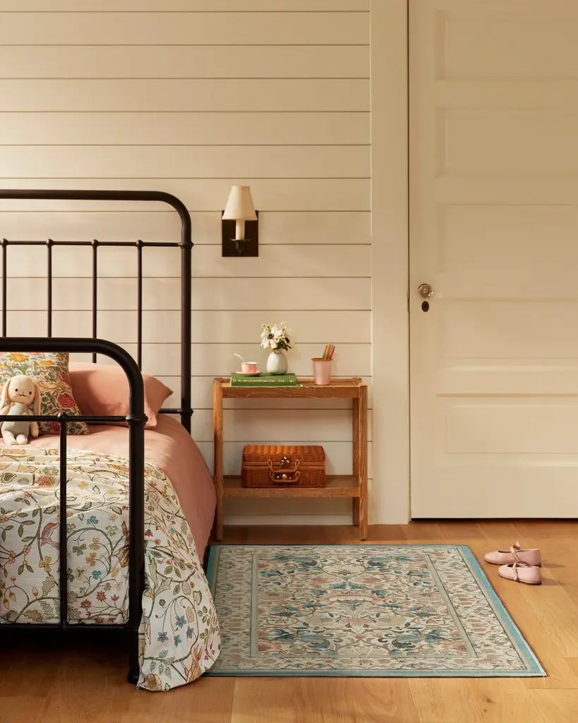 Enjoy life in full bloom with our Morris & Co. Lodden Soft Rose & Teal Rug. This fresh depiction of a classic William Morris design adds decadence to any room with its rich textures and golden hues. The intertwining florals expand from a central bloom, anchoring the composition in natural beauty. Teal blue and soft pink blooms layer on top of a classic cream background for an antique color palette. Water-resistant, stain-resistant, and machine-washable. Rug colors may vary slightly according to your device and the lighting in your space.