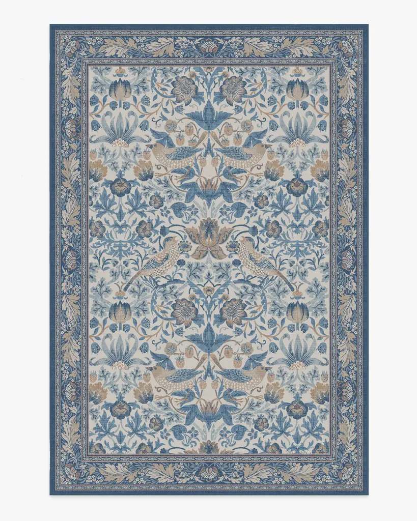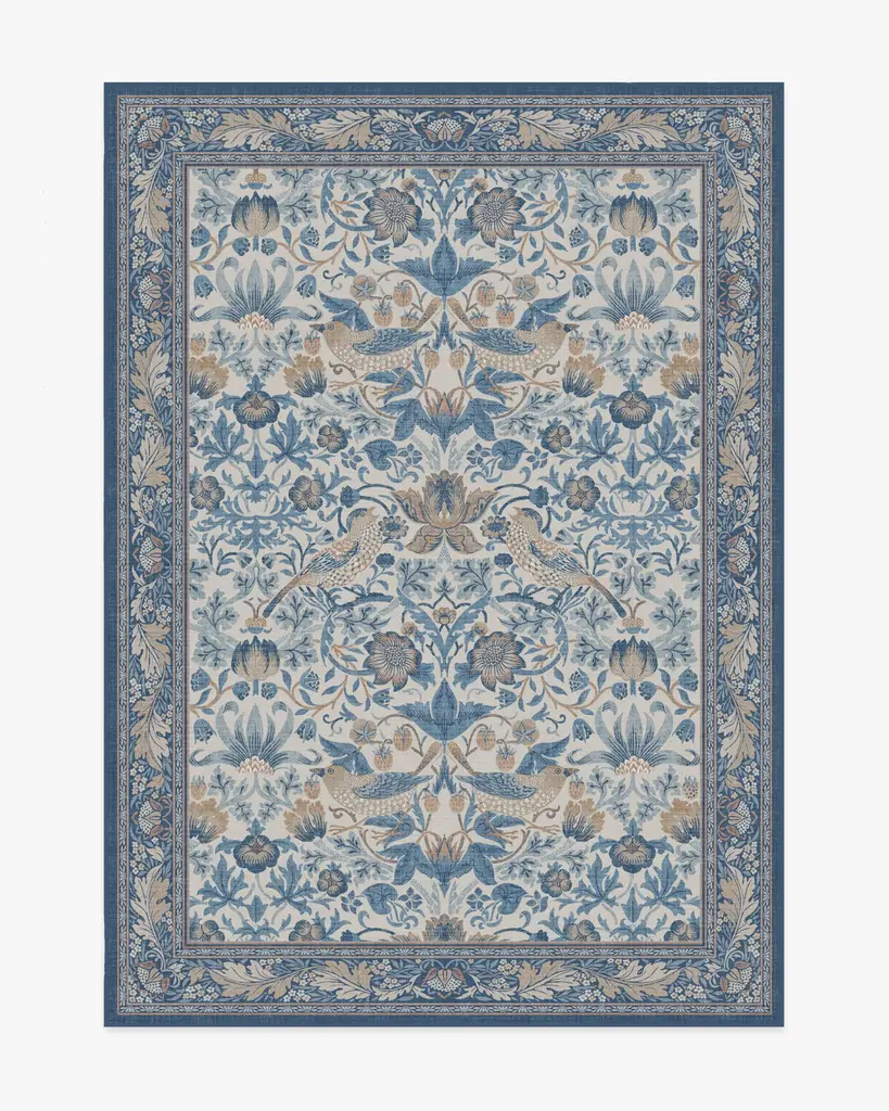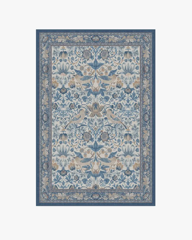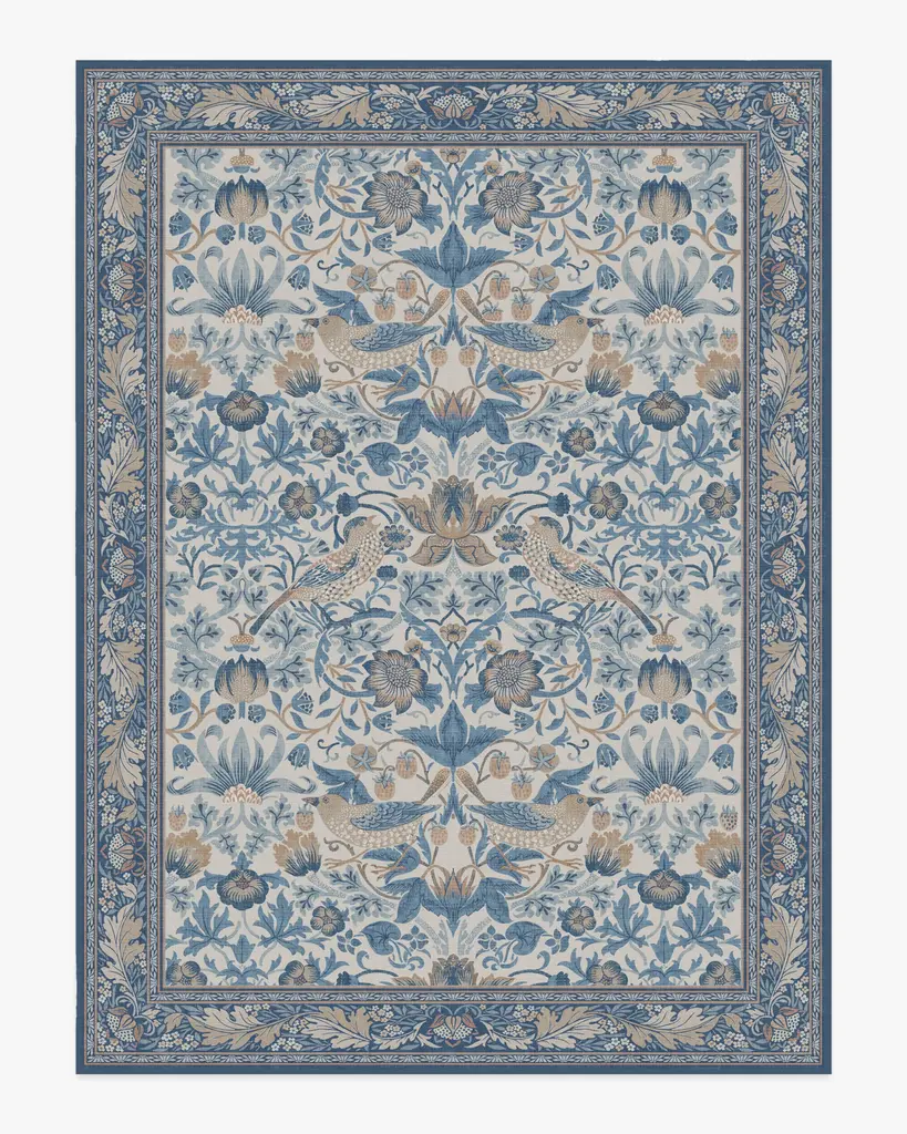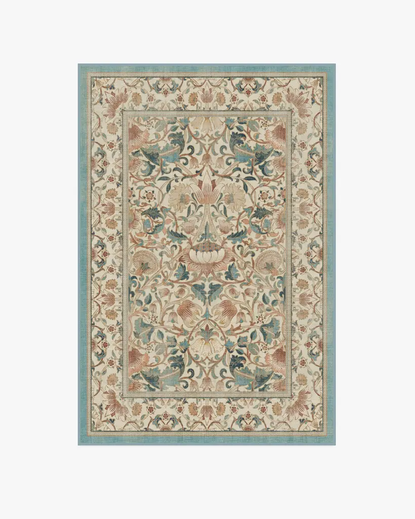 Enjoy life in full bloom with our Morris & Co. Lodden Soft Rose & Teal Rug. This fresh depiction of a classic William Morris design adds decadence to any room with its rich textures and golden hues. The intertwining florals expand from a central bloom, anchoring the composition in natural beauty. Teal blue and soft pink blooms layer on top of a classic cream background for an antique color palette. Water-resistant, stain-resistant, and machine-washable. Rug colors may vary slightly according to your device and the lighting in your space.