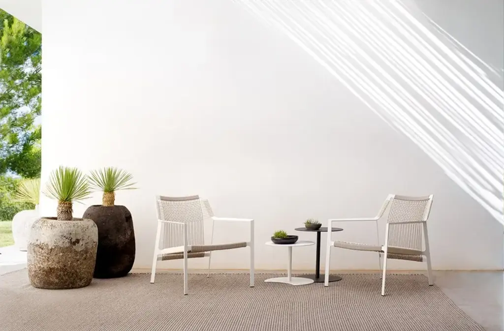 Combining your choice of Tribù furniture and accessories in an outdoor setting you can create the perfect lunch spot, corners to relax in and easily adaptable entertaining spaces. Adding a rug brings these design elements together and adds a focal point to the scene.The Loft rug, available in white, wengé and linen, is a natural looking weave of PVC-coated polyester, which is soft underfoot yet highly durable, sun- and rain-resistant. Loft rugs bring the essence of your interior design out of doors.