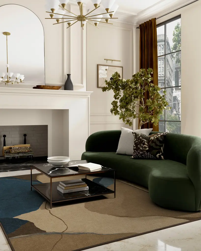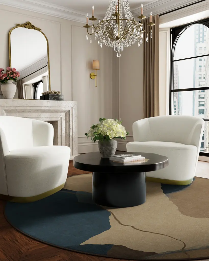 Invite elegance into your home. Our Nina Takesh Loire Natural Denim Blue Rug features an abstract swirl of shapes and lines in earthy taupe and brown tones, beautifully complemented by refreshing blues and navy. This serene design subtly alludes to the meeting of the shore and the sea, adding a coastal vibe to any space. Water-resistant, stain-resistant, and machine-washable. Rug colors may vary slightly according to your device and the lighting in your space.
