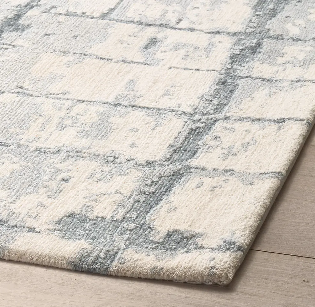 Lokesh evokes the nuanced beauty of shibori textiles in masterfully hand-knotted silk and wool, which respond to ambient light with a shifting patina of nuanced shading and luster. The yarns are spun by hand to enhance their softness and rich, textural character.