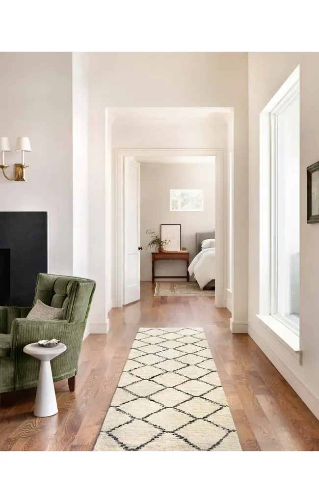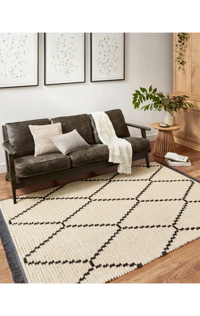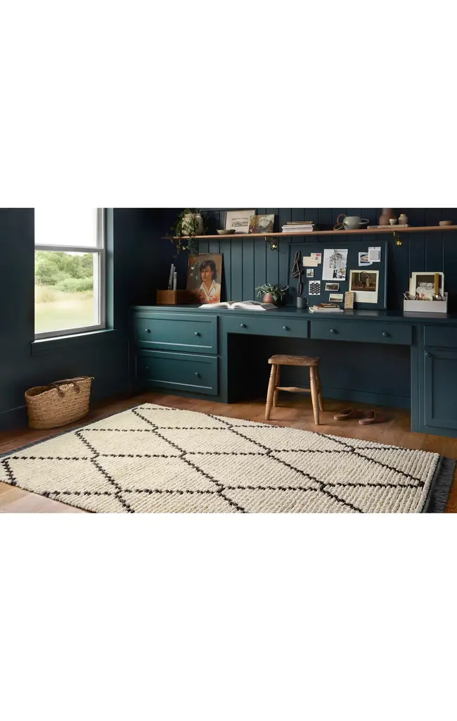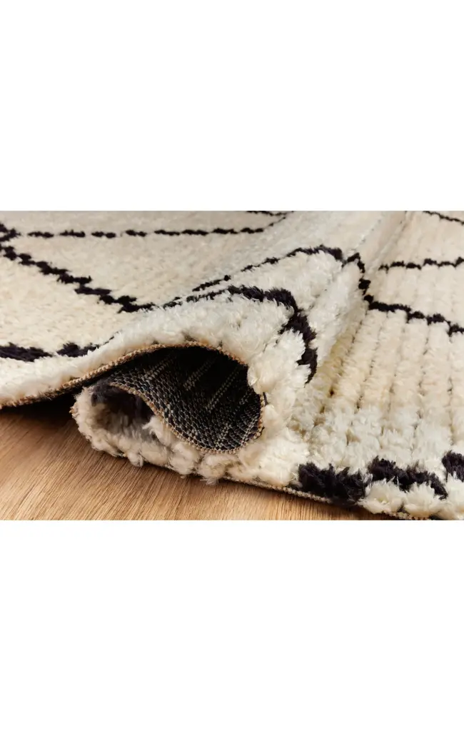 Inspired by the classic Moroccan rug, the Alice Collection is a product of collaboration between Chris Loves Julia x Loloi. Durable, graphic, and soft underfoot, Alice features a high-low texture with warm earthy colors. Power-loomed in Turkey of 100% polyester pile, each rug is finished by a subtle fringe.