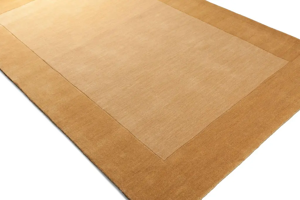 Traditional hand-looming techniques are combined with rich colors to create this crisp-yet-casual piece. This rug was handcrafted of wool, with teams of Indian craftsmen working traditional shuttle looms. The piece is then painstakingly finished by hand, hand-carved and detailed.