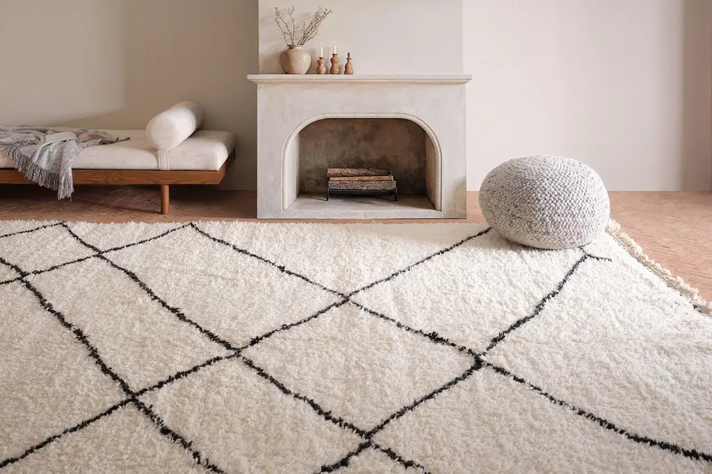Our Moroccan pieces are each one-of-a-kind. Much of our collection was woven between 30 and 100 years ago, and curated by us. Other rugs in our collection are fresh off the loom and made with traditional techniques. Moroccan rugs don’t come with a key. As with any painting or poem, their motifs have many subjective interpretations. Originally made for personal use, these rugs took months to weave, documenting a shifting tide of events and emotions in the weaver’s life.