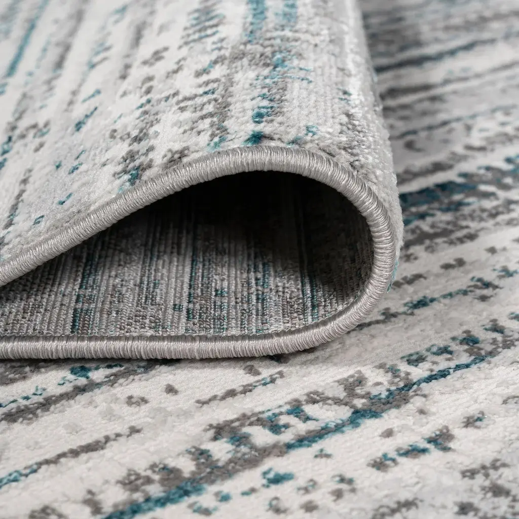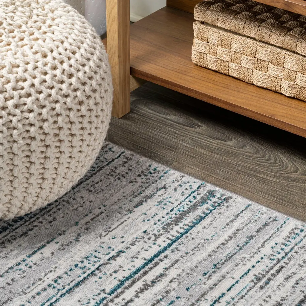 Loom Modern Strie' Area Rug - Gray,turquoise / 2 X 8