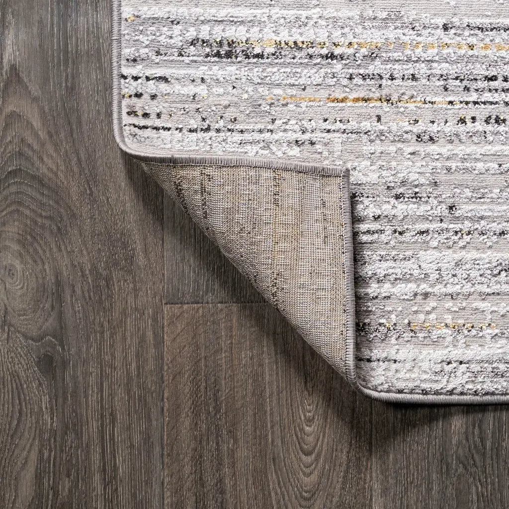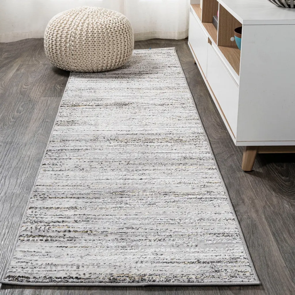 Mingled threads of charcoal, gray and ivory create a modern, linear abstract design with a mid-century look. This rug's unique strie' stripe pattern makes it perfect for homes with kids and pets. It's the ideal centerpiece for a contemporary, coastal or minimalist interior.