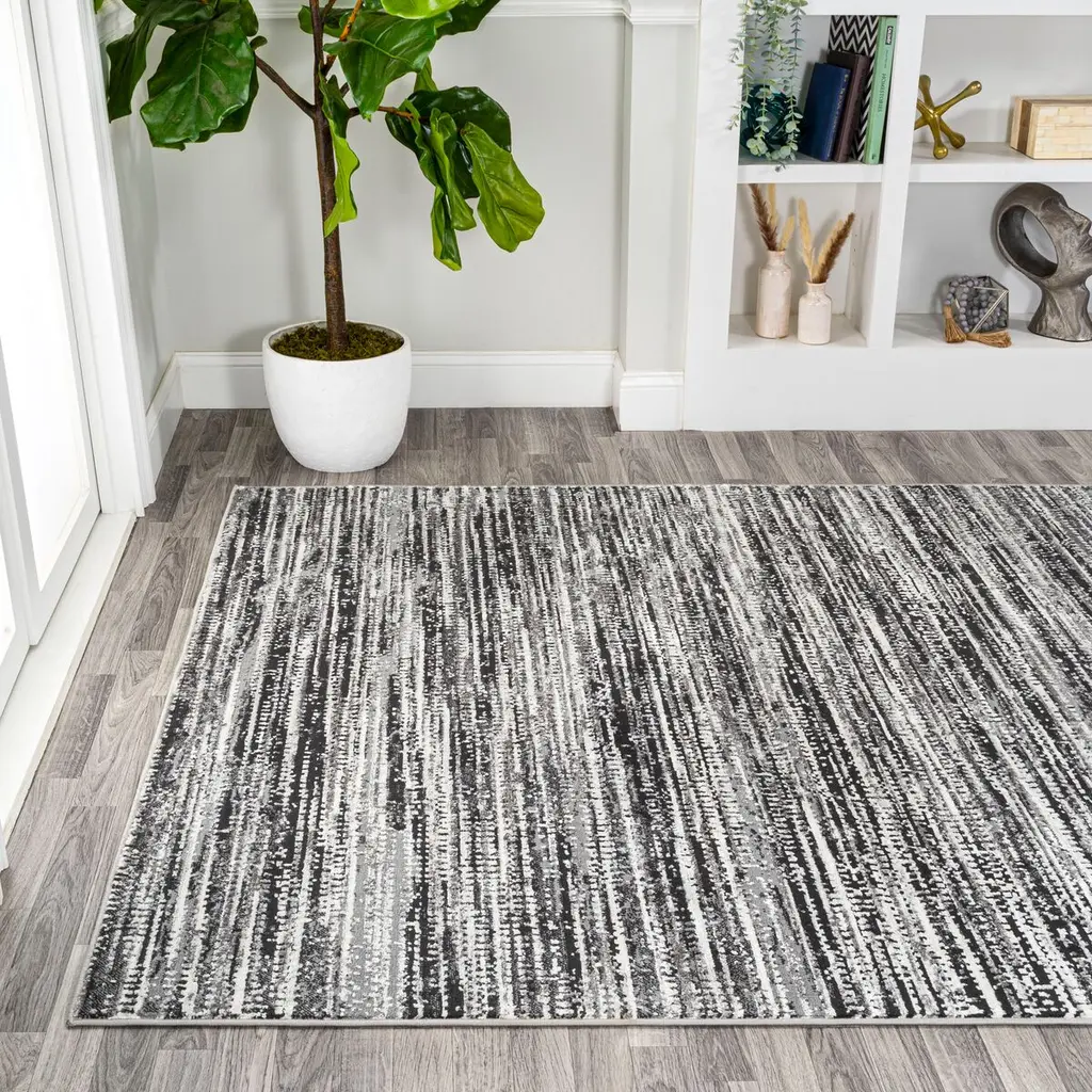This polypropylene rug's strié stripes call to mind Mid-Century Modern style—and also help to hide dirt and pet hair! A rug pad is recommended to help prevent slipping and extend the life of the rug.