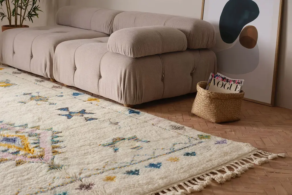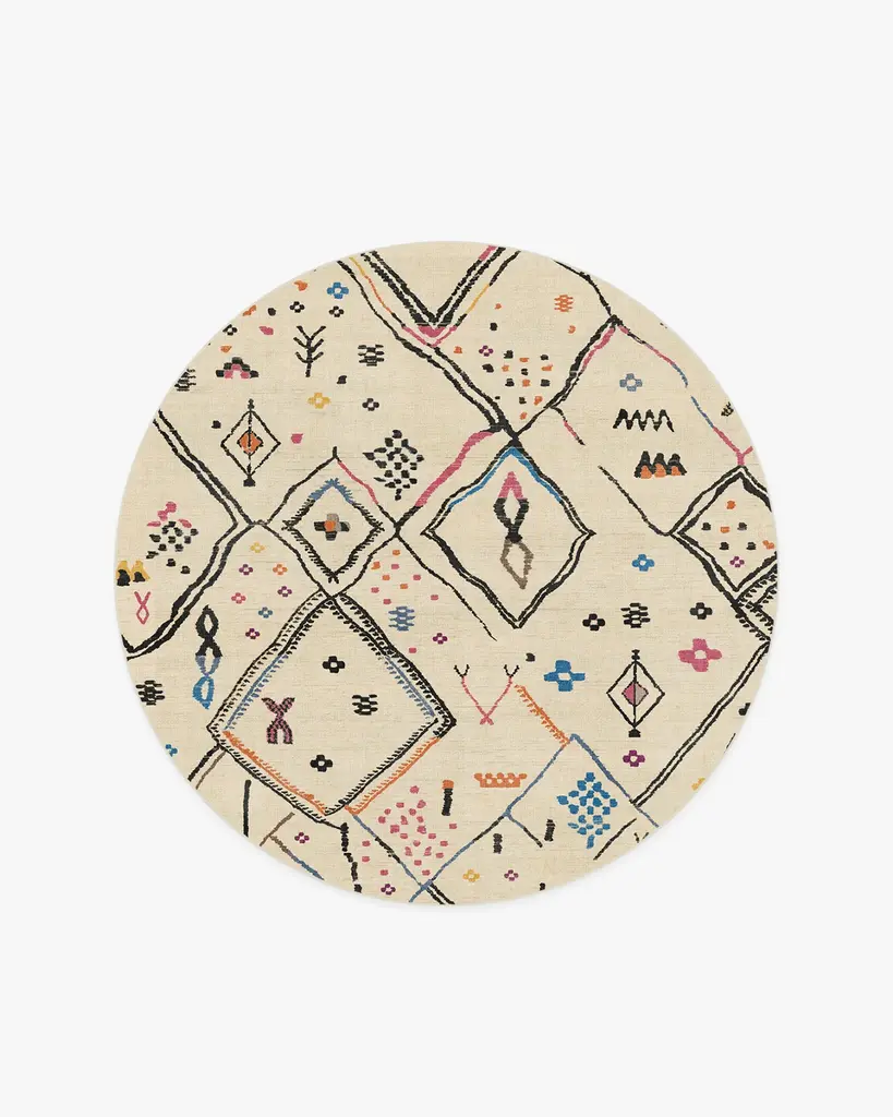 Our Moroccan pieces are each one-of-a-kind. Much of our collection was woven between 30 and 100 years ago, and curated by us. Other rugs in our collection are fresh off the loom and made with traditional techniques. Moroccan rugs don’t come with a key. As with any painting or poem, their motifs have many subjective interpretations. Originally made for personal use, these rugs took months to weave, documenting a shifting tide of events and emotions in the weaver’s life.