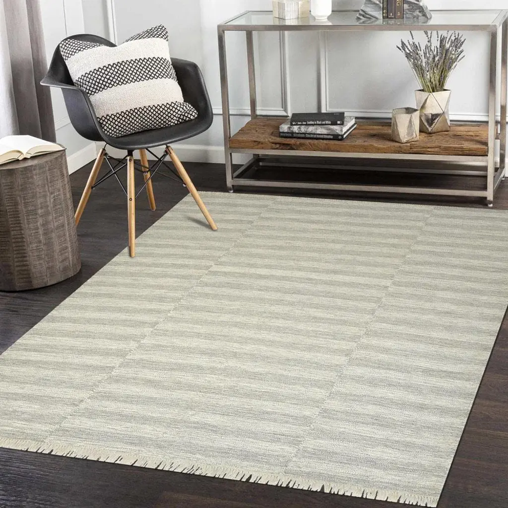 Loretta Modern Classic Silver Wool Striped Patterned Rug - 9'x12'
