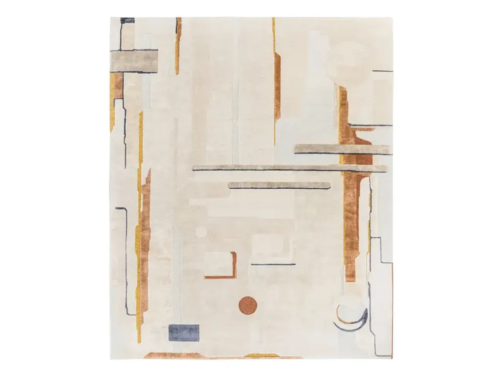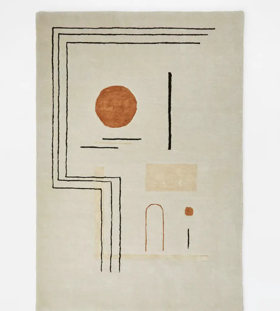 Inspired by '70s wood architecture, our Loretto Ivory & Brown Rug has a decidedly contemporary feel. Featuring neutral browns and pops of coral against an ivory background, this modern design is a lesson in making simple lines interact. Water-resistant, stain-resistant, and machine-washable. Rug colors may vary slightly according to your device and the lighting in your space.