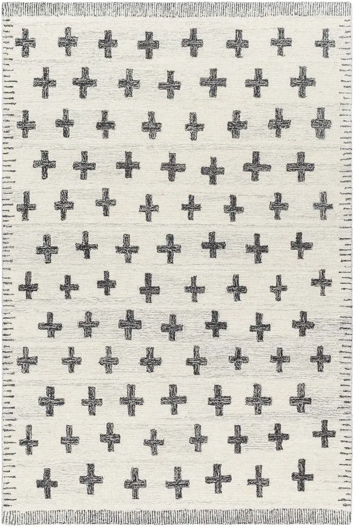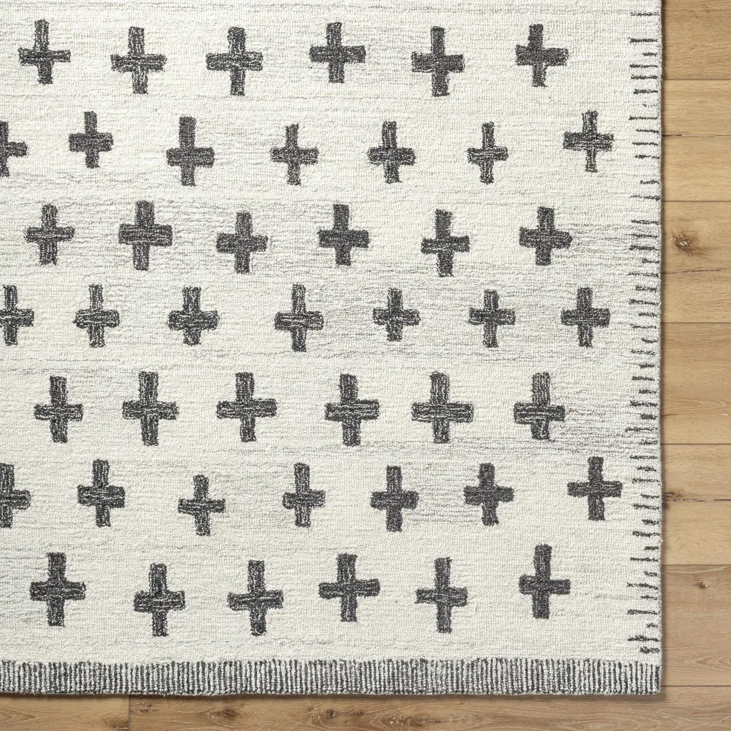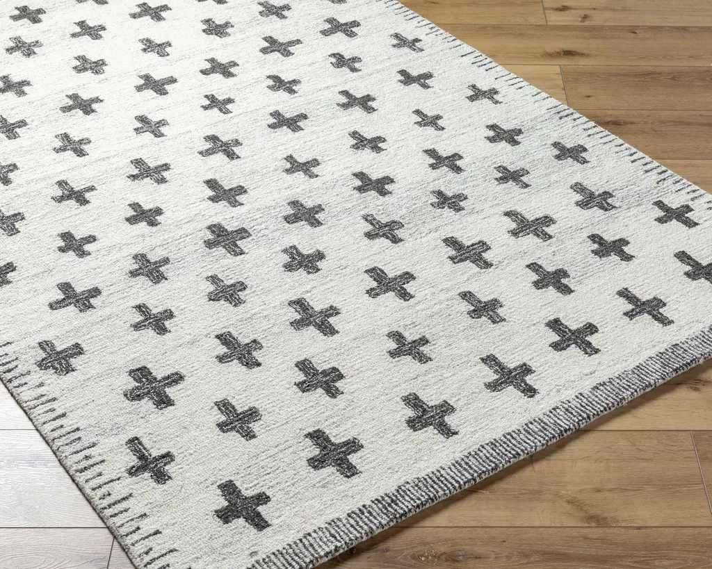 Collection: Lotta Colors: Light Silver, Off White, Silver Gray Construction: Hand Tufted Material: 100% Wool Pile: Medium Pile Pile Height: 0.24" Styles: Contemporary Backing: Canvas Made In: India Thickness: 0.39" Price Range: $$$$$ (Affordable)