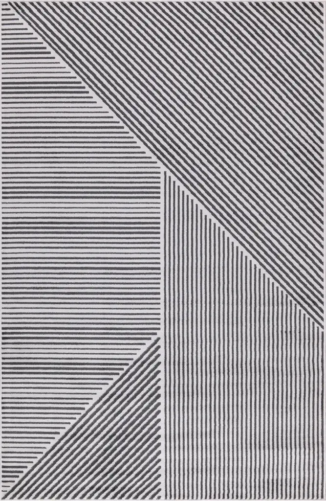Low-Pile Faron Charcoal/ivory Rug, Charcoal, 6'5"x9'5"