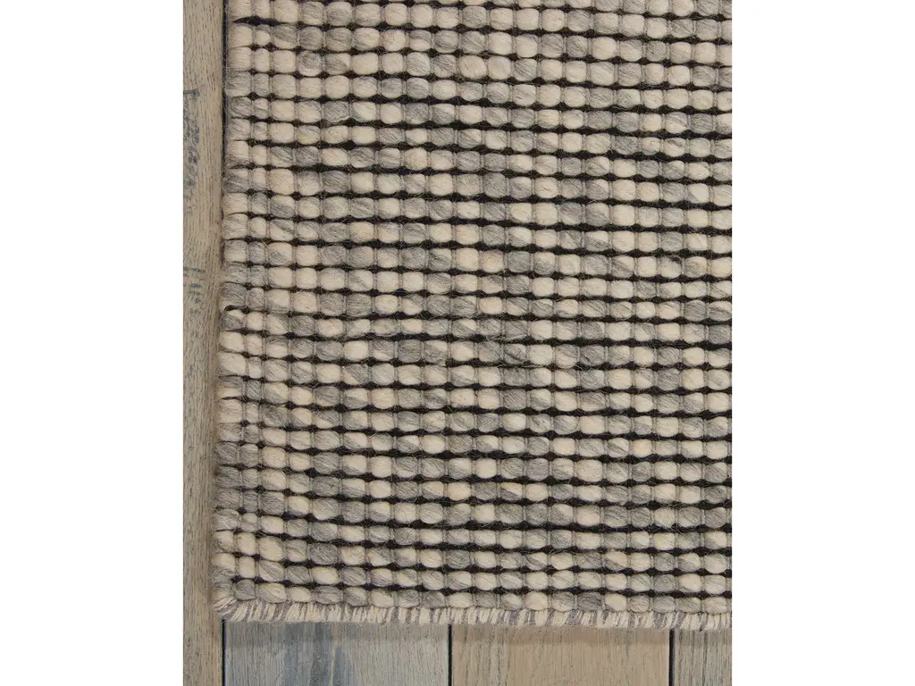 Woven by hand in a nubby wool-blend loop, Calvin Klein's rug lends springy texture to your space.