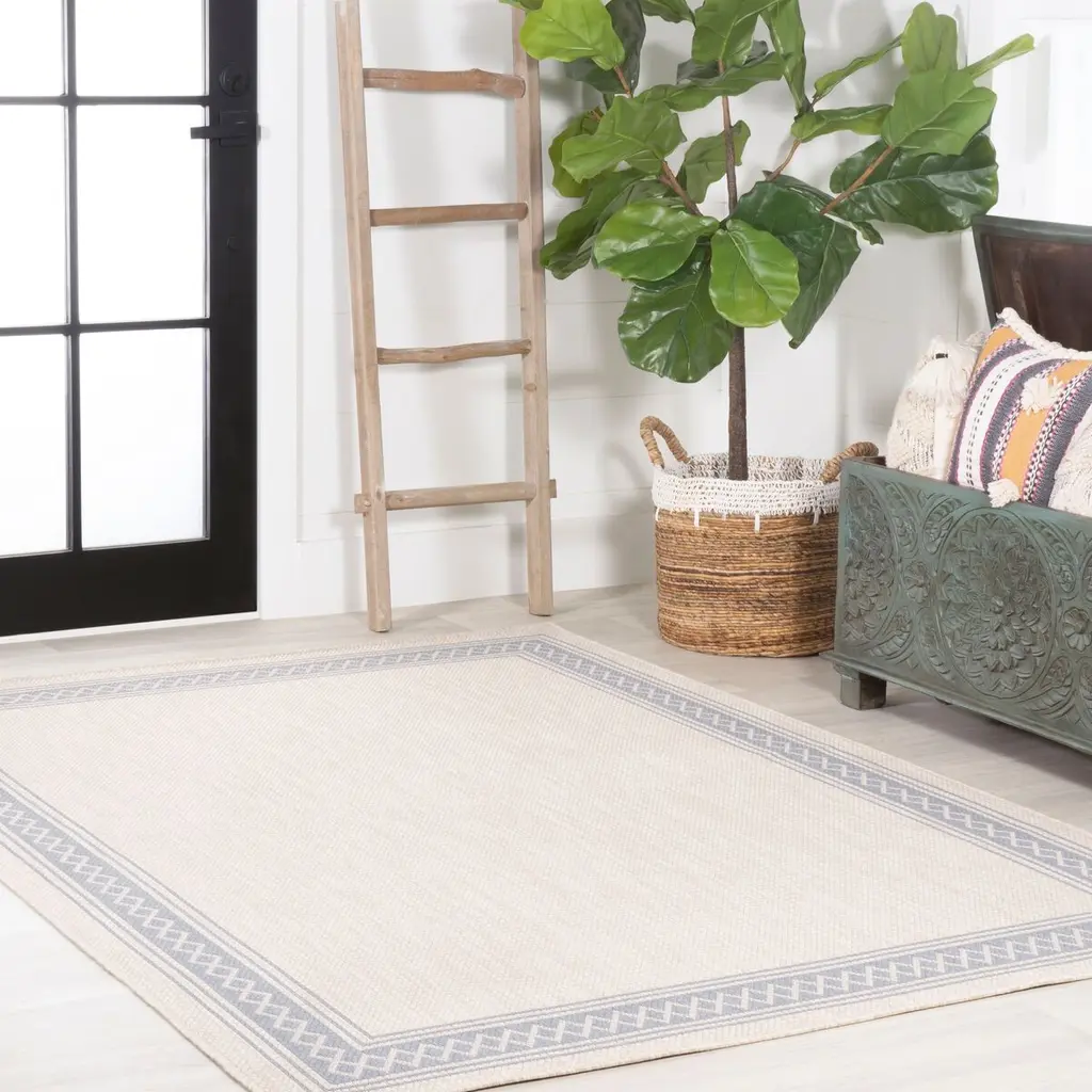 A diamond border adds timeless finesse to this indoor/outdoor polypropylene rug. A rug pad is recommended to help prevent slipping and extend the life of the rug.