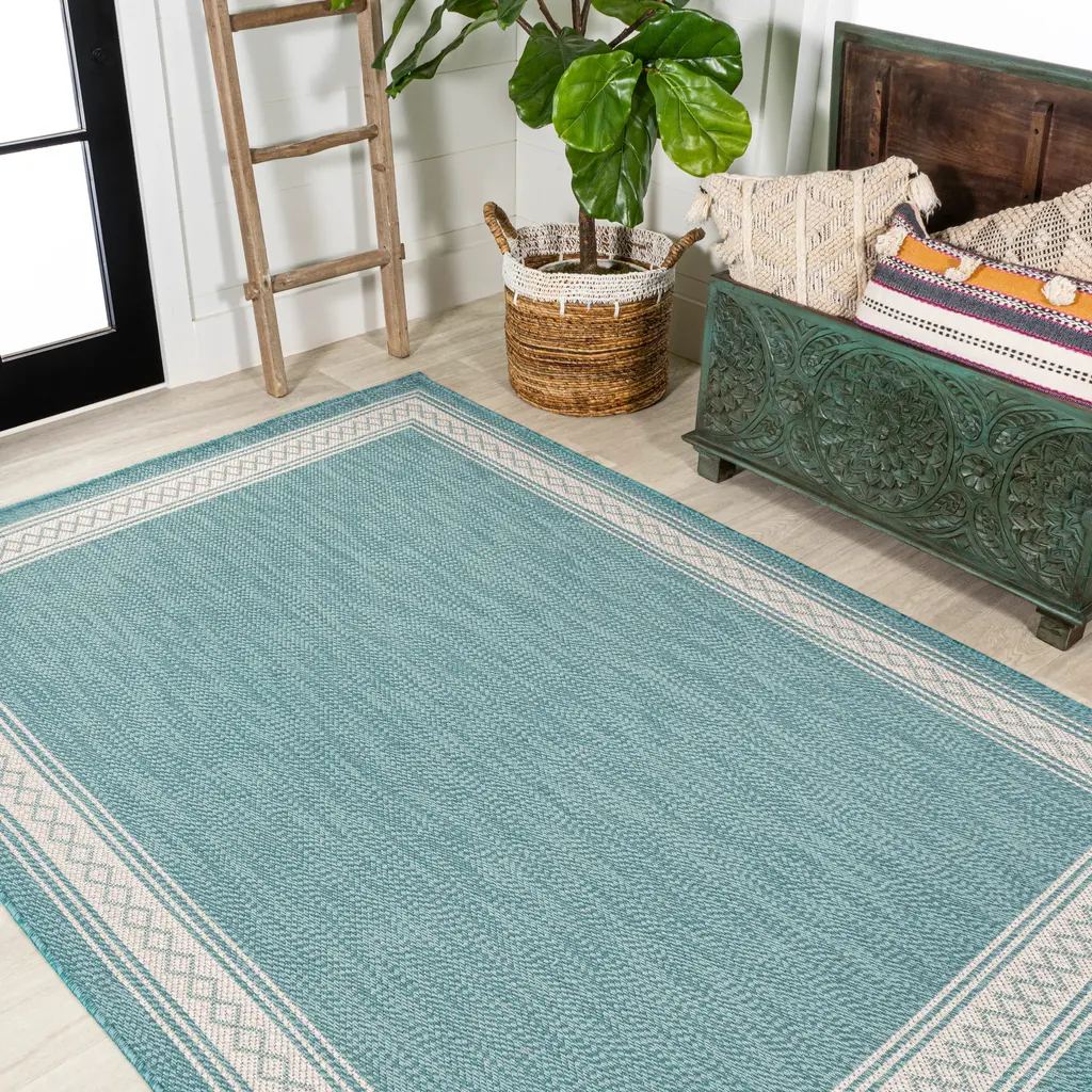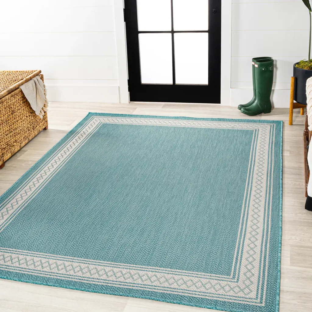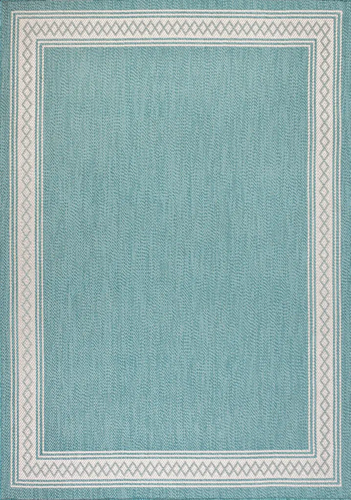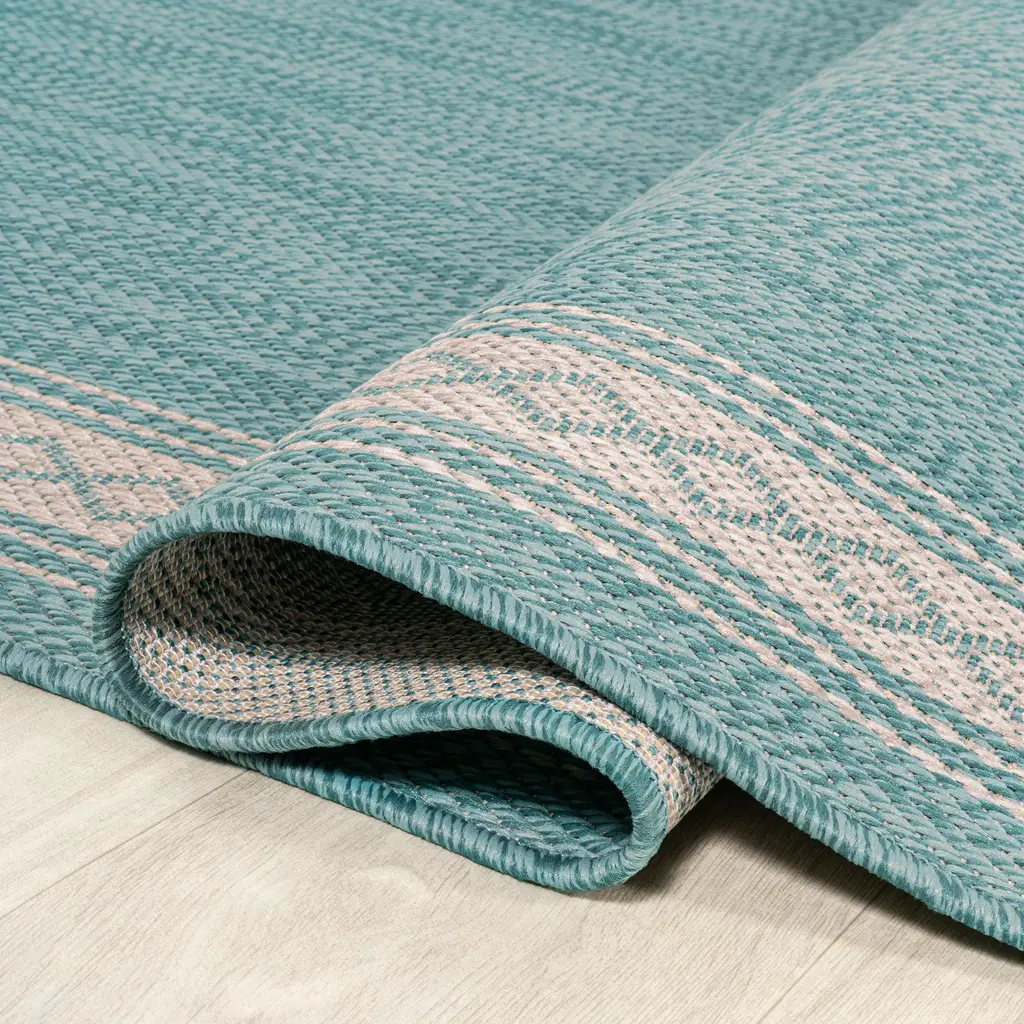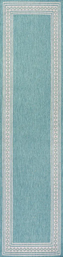 Lucia Classic Diamond Border Indoor/outdoor Area Rug - Aqua / 2 X 8