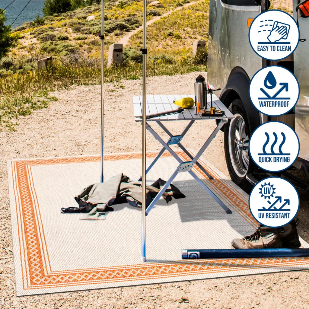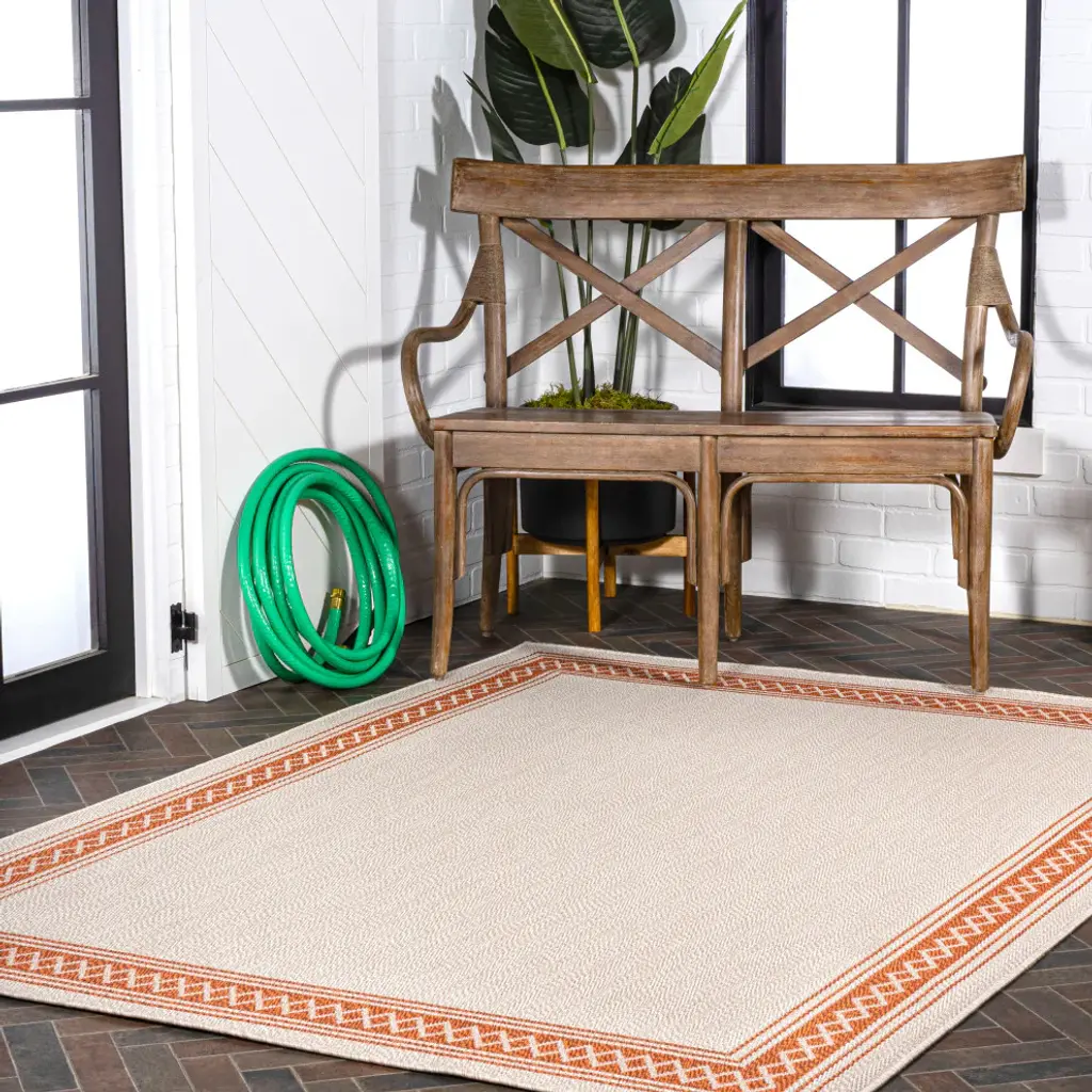 Lucia Classic Diamond Border Indoor/outdoor Area Rug, Cream/orange, 3X5