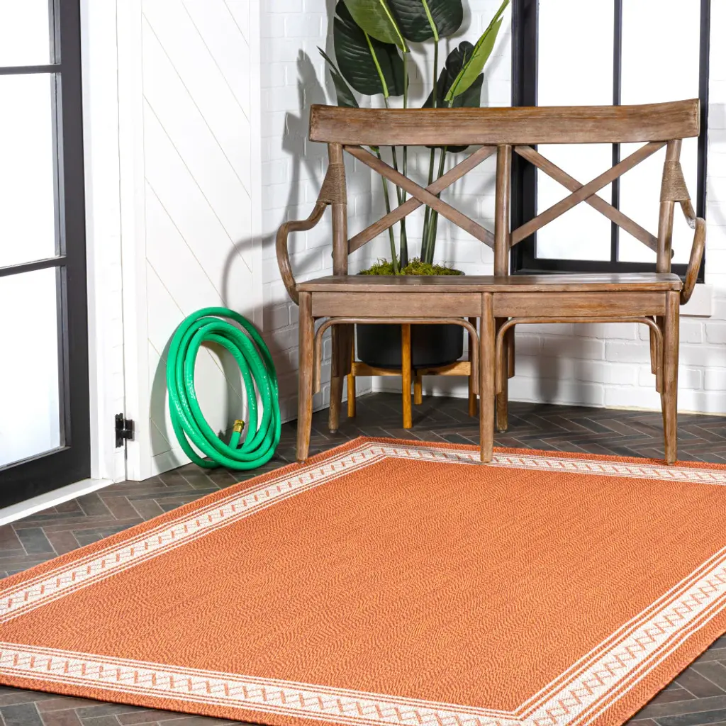 Lucia Classic Diamond Border Indoor/outdoor Area Rug, Orange/cream, 5X8