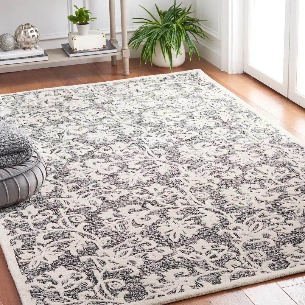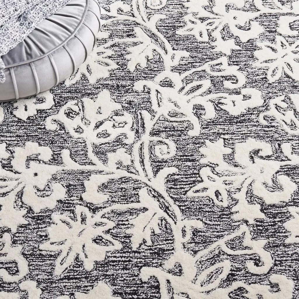 The subtle high-low texture accentuates this hand-tufted wool rug's graceful floral motif. A rug pad is recommended to help prevent slipping and extend the life of the rug.