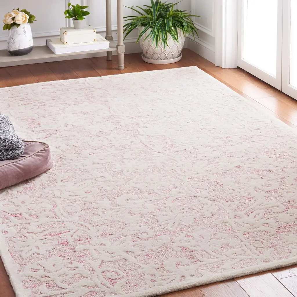 The subtle high-low texture accentuates this hand-tufted wool rug's graceful floral motif. A rug pad is recommended to help prevent slipping and extend the life of the rug.