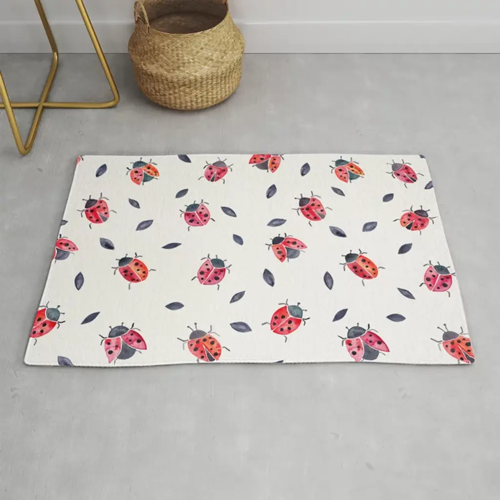 Lucky Ladybugs & Black Leaves Outdoor Rug