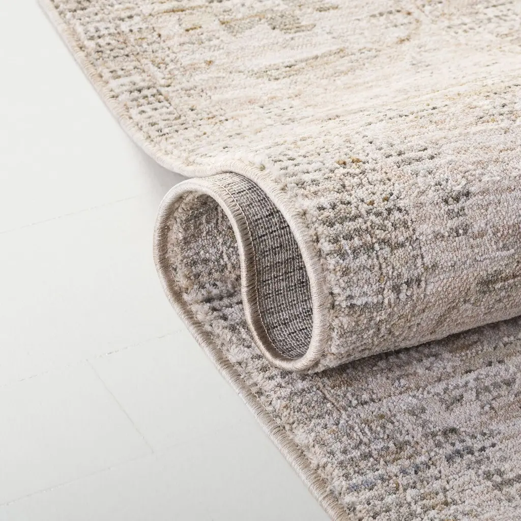 Elevate your living space with the timeless elegance of our Transitional Style Area Rug. Expertly crafted in Turkey, this medium rectangle rug measures 5'3" x 7'6" and boasts a comfortable pile height of 1/4". Featuring a power-loomed polyester pile, this rug promises durability and easy maintenance. Adorned in a serene palette of blue and ivory beige, the rug showcases a blend of traditional motifs and distressed elements, creating a harmonious balance between classic and contemporary. The intricate pattern, inspired by the image, exhibits versatile floral and geometric designs that can seamlessly integrate into a variety of decors, making it an ideal choice for any room. Its transitional style is perfect for those who appreciate the fusion of modernity with classic charm. Whether placed in a busy living area or as a focal point in a dining room, this area rug is sure to enhance your home with its sophisticated allure and soft underfoot experience. Indulge in the beauty and craftsmanship of a rug that is not only visually captivating but also constructed to withstand the test of time.