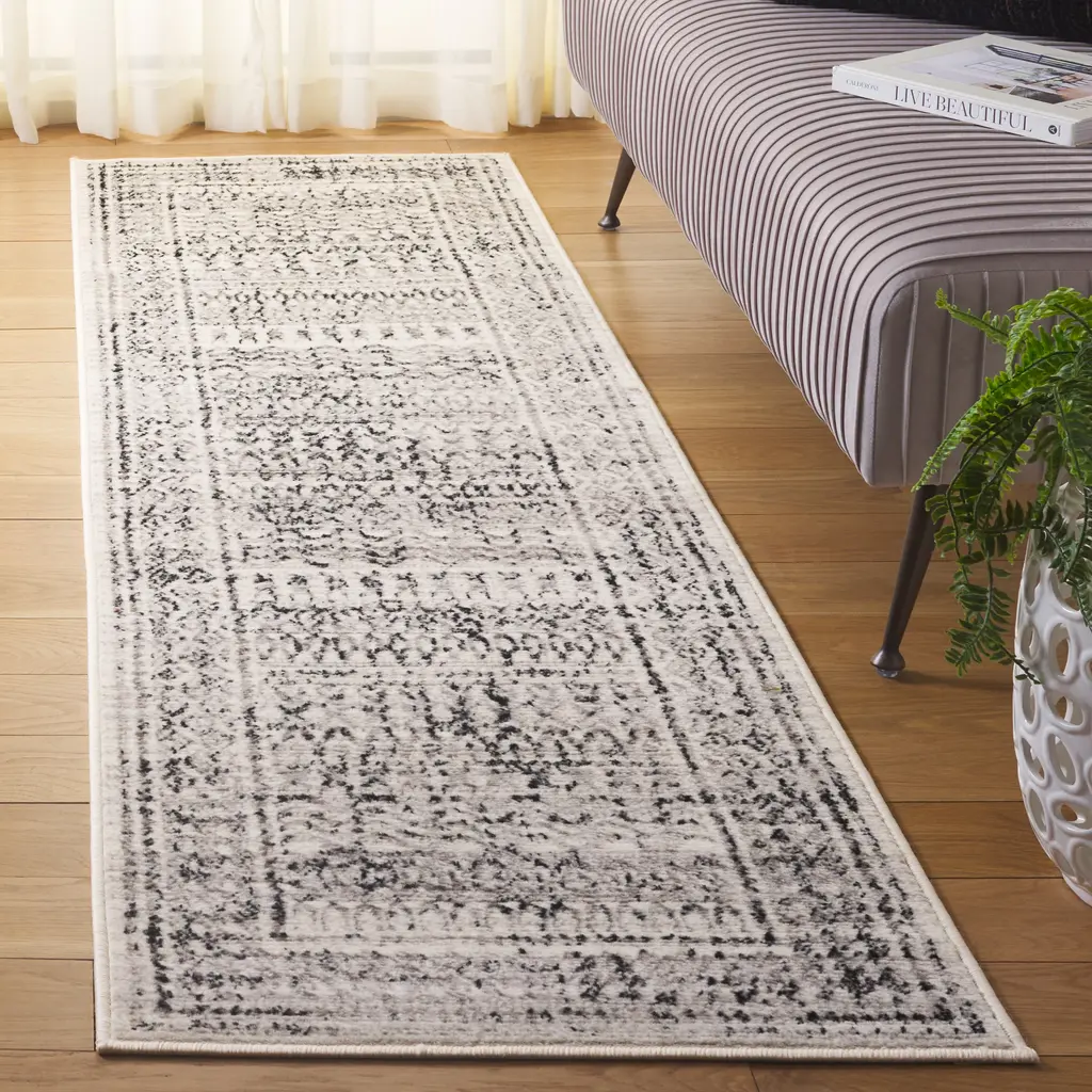 Collection: Lugo Colors: Charcoal, Ivory, Medium Gray, Light Gray, Dusty Pink, Pale Blue Construction: Machine Woven Material: 100% Polyester Pile: Medium Pile Pile Height: 0.22" Styles: Traditional Made In: Turkey Thickness: 0.41" Fringe Length: 0.1" Price Range: $$$$$ (Affordable)