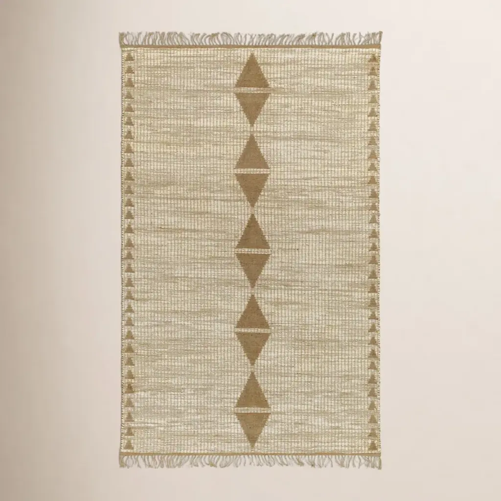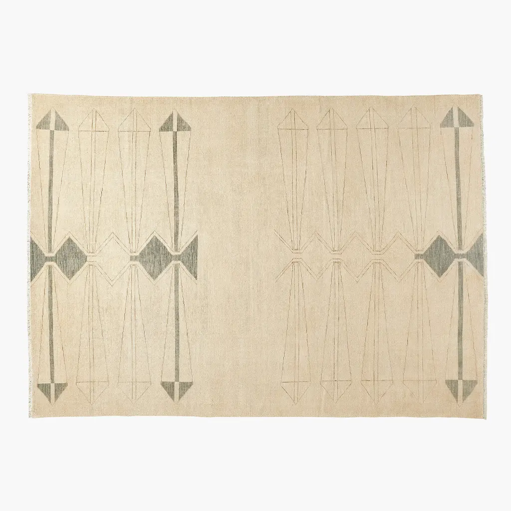 Hand-knotted New Zealand wool rug pays homage to the distinctive organic motifs of California midcentury modernism. Recreated from an original 1960s design by Los Angeles artist Evelyn Ackerman, the rug embodies the modernist principle of combining fine art with traditional craftsmanship. The rug is artfully distressed for depth and dimension that varies from rug to rug. CB2 exclusive. Detroit natives Evelyn and Jerome Ackerman founded ERA Industries in 1956. For 50 years, the Los Angeles-based couple played a central role in shaping the California midcentury modern movement. The Ackermans' first woven tapestry was featured on the cover of the Los Angeles Times Home Magazine in 1957. Presented in collaboration with Ackerman Modern, the pieces in this collection recreate the couple's iconic midcentury designs using original drawings and archival photographs. How will it look in your room? 12"x12" rug samples are available in stores for a fee refundable upon return of the sample.