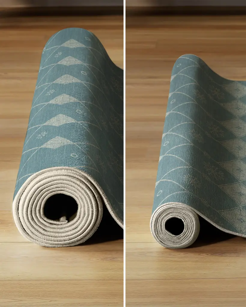 Get ready to make snow angels on our Lumia Pale Blue Rug. Inspired by delicate, falling snow, this wintry design features a calming pale blue background with subtle cream snowflake and diamond motifs reminiscent of frost-covered landscapes. Water-resistant, stain-resistant, and machine-washable. Rug colors may vary slightly according to your device and the lighting in your space.