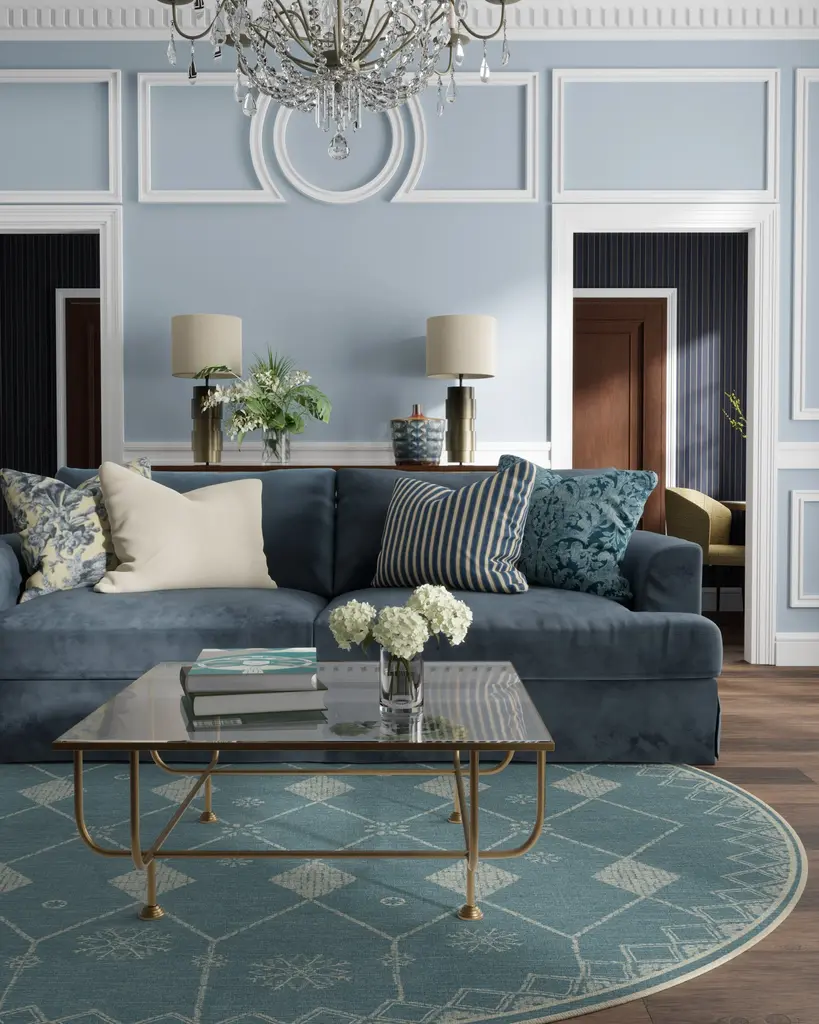 Get ready to make snow angels on our Lumia Pale Blue Rug. Inspired by delicate, falling snow, this wintry design features a calming pale blue background with subtle cream snowflake and diamond motifs reminiscent of frost-covered landscapes. Water-resistant, stain-resistant, and machine-washable. Rug colors may vary slightly according to your device and the lighting in your space.
