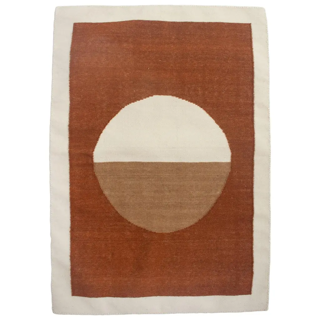 Luna Circle Blue Handwoven Modern Wool Rug, Carpet And Durrie