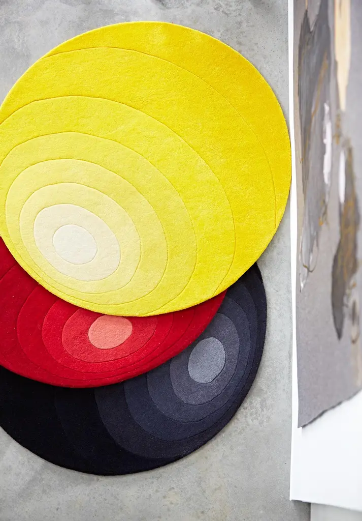 Eight colored rug with organic circle pattern designed by Verner Panton.Material:100% New Zealand woolHand tuftedColor:Tone-in-tone dark green.
