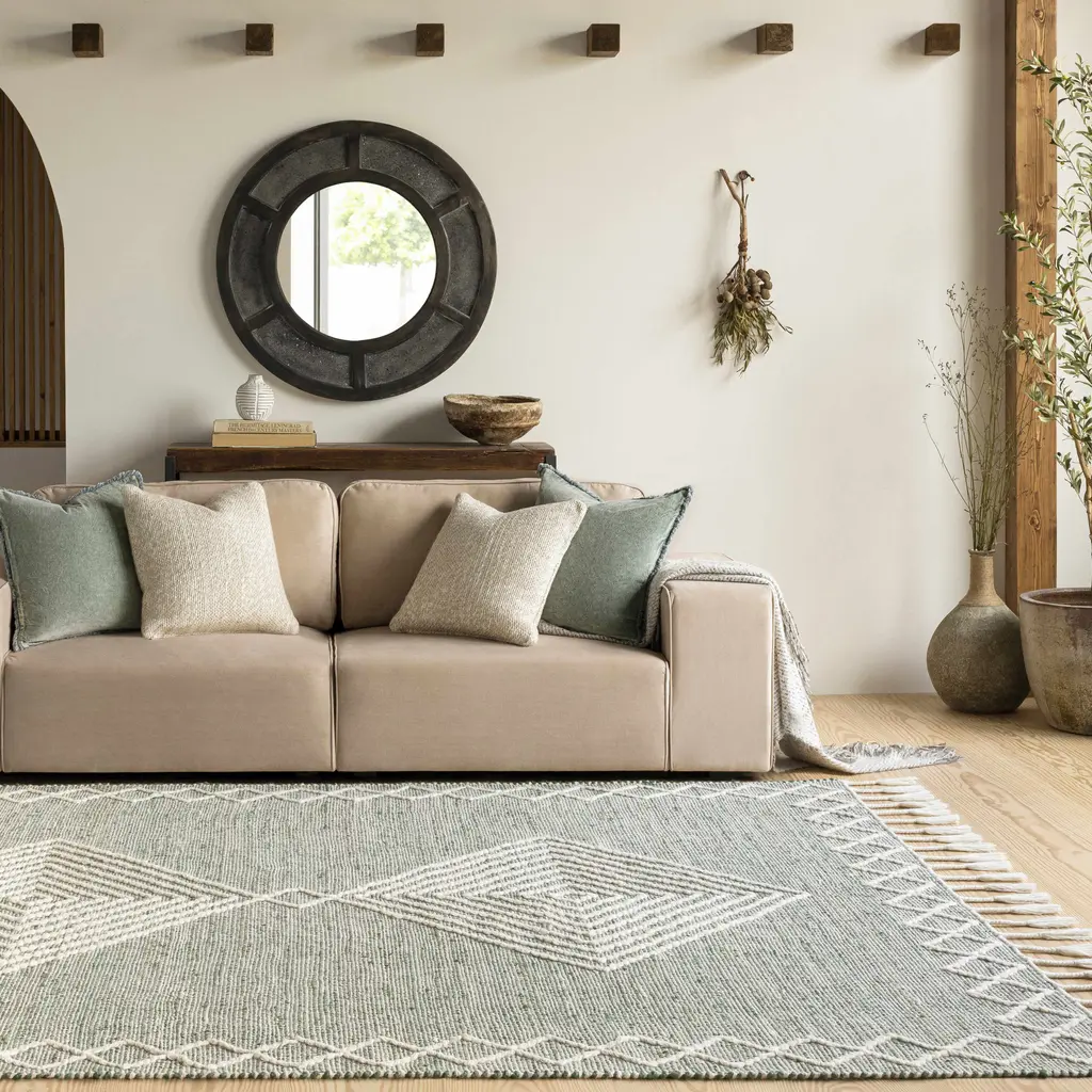 Bask in the glimmer of diamonds with our goop Luna Soft Teal Rug. Inspired by Indian dhurrie designs, this obsession-worthy style features clean and simple borders adorned with symmetrical, micro-patterned diamonds. Each light cream motif elegantly pops against a soft turquoise background, bringing livable luxury to any room. Water-resistant, stain-resistant, and machine-washable. Rug colors may vary slightly according to your device and the lighting in your space.