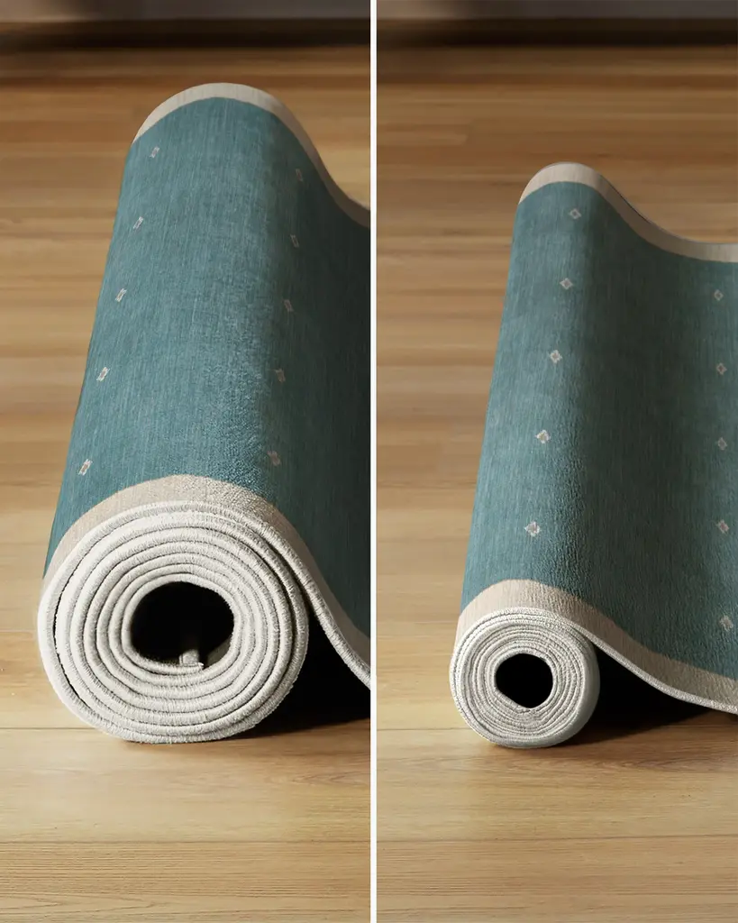 Bask in the glimmer of diamonds with our goop Luna Soft Teal Rug. Inspired by Indian dhurrie designs, this obsession-worthy style features clean and simple borders adorned with symmetrical, micro-patterned diamonds. Each light cream motif elegantly pops against a soft turquoise background, bringing livable luxury to any room. Water-resistant, stain-resistant, and machine-washable. Rug colors may vary slightly according to your device and the lighting in your space.