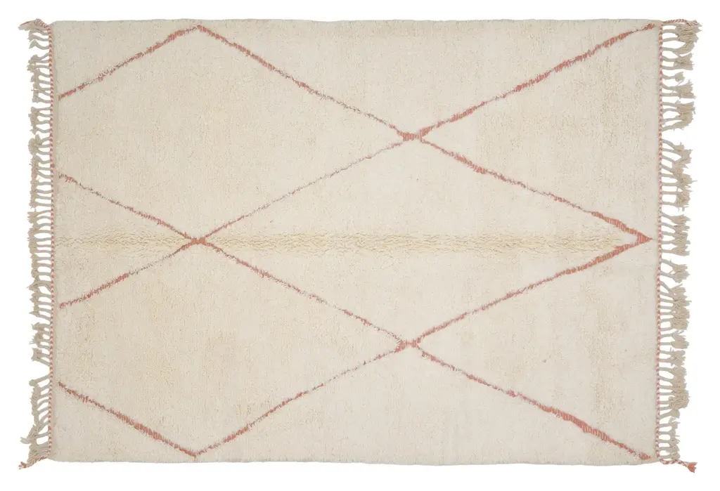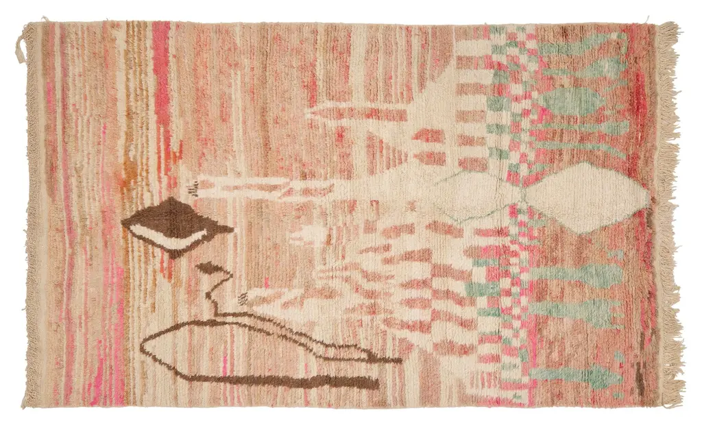 Our Moroccan pieces are each one-of-a-kind. Much of our collection was woven between 30 and 100 years ago, and curated by us. Other rugs in our collection are fresh off the loom and made with traditional techniques. Moroccan rugs don’t come with a key. As with any painting or poem, their motifs have many subjective interpretations. Originally made for personal use, these rugs took months to weave, documenting a shifting tide of events and emotions in the weaver’s life.