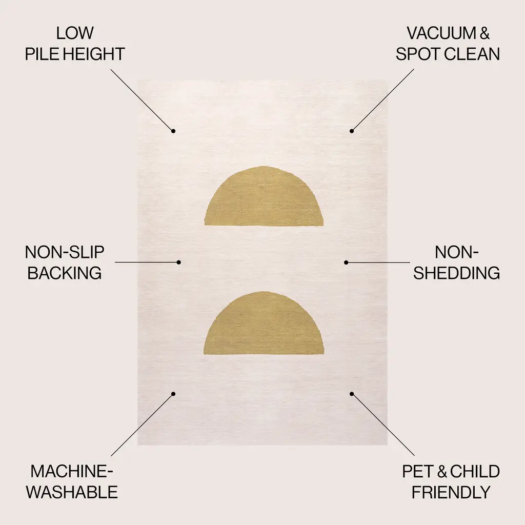 Inspired by Scandinavian simplicity, our machine washable geometric rug has chic minimalist style. The half-circle pattern is woven in a modern, two-tone color palette. Add graphic punch to your living room, dining room, entry, or bedroom with this easy-care rug.