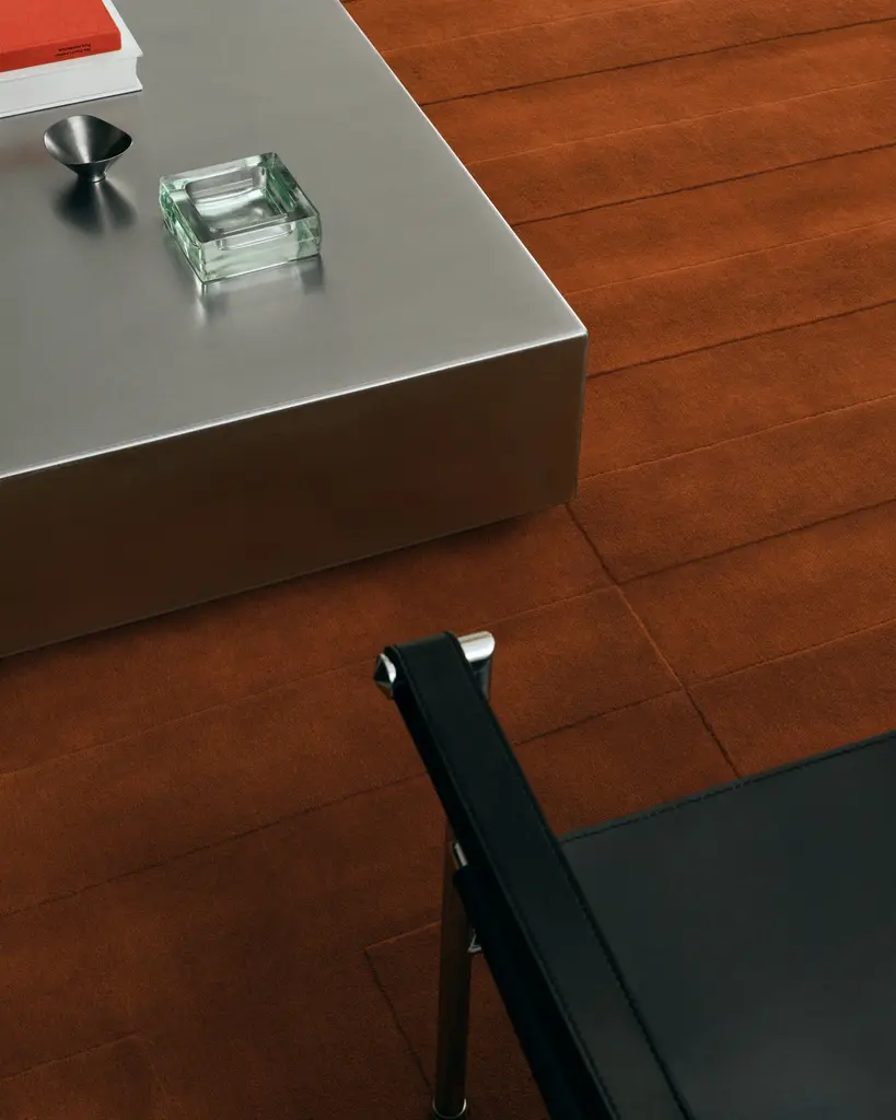 Inspired by the classic elegance of mid century art and design. Made in a solid color but cut with a two millimeter difference in pile height creating an understated and clean pattern. This plush cut-pile rug is made with 100% New Zealand wool for great quality and a soft feel.