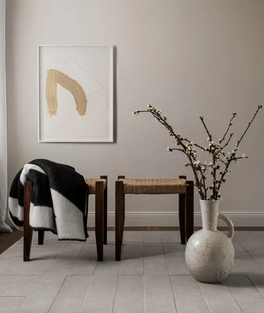 Inspired by the classic elegance of mid century art and design. Made in a solid color but cut with a two millimeter difference in pile height creating an understated and clean pattern. This plush cut-pile rug is made with 100% New Zealand wool for great quality and a soft feel.